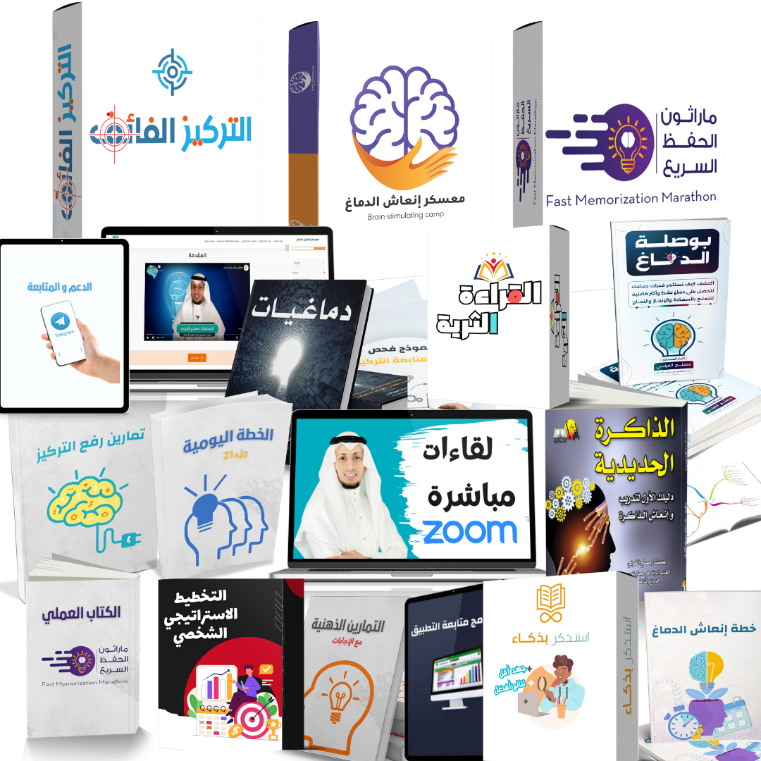 اتقن أقوى مهارات الحفظ والتذكر من أول مرة. تشمل: محاضرات مسجلة بأسلوب خاص، كتاب عملي، تمارين تركيز، وبرنامج متابعة إلكتروني.